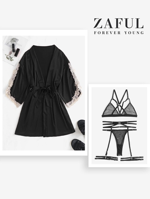 Zaful Clothing Gender: For Women Clothing Type: Lingerie Set, Night Robe Clothing Style: Sexy Clothing Collar-line: Spaghetti Straps Clothing