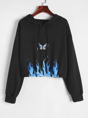 Zaful Stamped with a butterfly & flame print, it's primed for teaming with your (vintage) denim. Style: Casual Clothing Style: Hoodie Sleeve Type: Drop Shoulder Length: Short Sleeves Length: Full