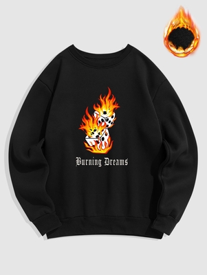 Flame Dice Pattern Fleece-lined Sweatshirt 2xl Black