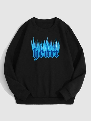 Flame Heart Graphic Printed Fleece-lined Sweatshirt Xxl Black