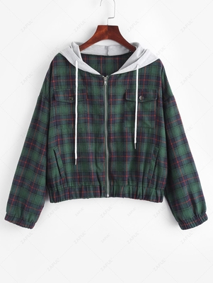 Zaful This zip-up jacket is cut with a perfect combo of the marl hooded collarline & classic plaid patterning. Two cargo pockets at the front add an extra edge. Pair this jacket with your favorite ankle jeans & a casual tee for a comfy weekend style. Occasions: Daily Style: Fashion Clothes Type