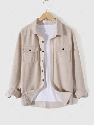 Flap Pocket Long Sleeves Shacket Xl Light Coffee