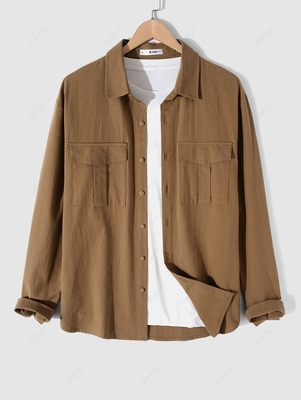Zaful Shirts Type: Casual Shirts Style: Casual Occasions: Daily Fit Type: Loose Shirt Length: Regular Sleeves Length: Full Collar: Shirt Collar Material: Cotton Material Stretch: No Stretch Pattern: Solid Color Decoration: Front Pocket Season: Fall, Spring Weight: 0.3050kg Package: 1 x Shirt