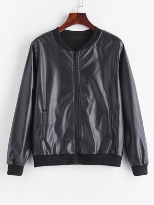 Zaful This faux leather jacket with front easy zip and handy pockets prevent chilly winds while the fleece lined keeps you staying warm and cozy. Occasions: Daily Style: Casual Clothes Type: Jackets Material: Cotton, Polyester Type: Wide-waisted Length: Regular Sleeves Length: Full Collar: Stand-Up