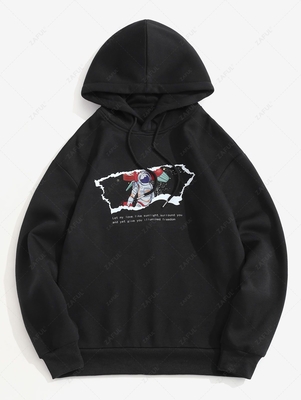 Zaful Stay warm & cozy in this easy pull-on fleece-lined hoodie, simple yet casual. The astronaut graphic embellishment at the front adds some charm to the hoodie featuring the drawstring attached hood, drop shoulder design, & ribbed hems. Match it with your most collections to finish a laid-ba