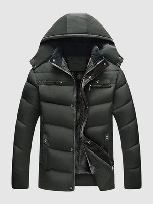 Fleece Lining Zip Pocket Detachable Hooded Puffer Down Jacket M Deep