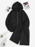 Zaful Fully lined with tactile fleece, this two-piece set comprises a zip-up hoodie & drawstring shorts, pair with your fave trainers for an athleisure combo. Occasion: Daily Style: Athleisure Fit Type: Loose Collar-line: Hooded Sleeves Length: Long Sleeves