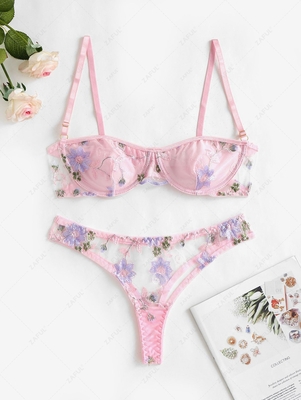 Zaful Style: Sexy Materials: Elastane, Polyester Bra Style: Unlined Chest Pad: None Pads Cup Shape: Three Quarters(3/4 Cup) Support Type: Underwire Strap Type: Adjusted-straps Closure Style: Two Hook-and-eye Pattern Type: Floral Decoration: Embroidery, Mesh Material Stretch: No Stretch Weight: 0.0700