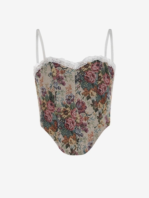 Floral Jacquard Lace Insert Corset Top S Multi A