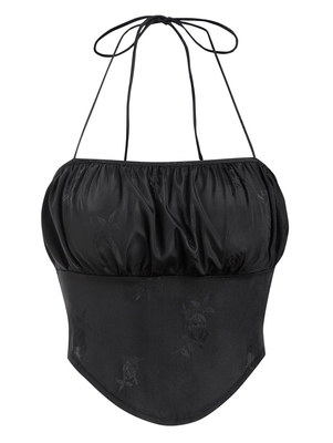 Zaful This halter top gets an oriental update with this delicate floral jacquard and is enhanced with a stretchy smocked back and flattering scarf hem that gives this top a versatile silhouette. Pair it with your favorite jeans and simple flats for a casual flirty style. Style: Fashion Shirt Length