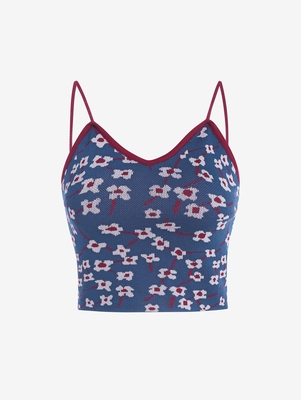 Zaful When the temperatures rise, you'll be cheered by the vibrant florals knitted into this knitted cami top. Style: Cute Shirt Length: Short Collar: Spaghetti Strap