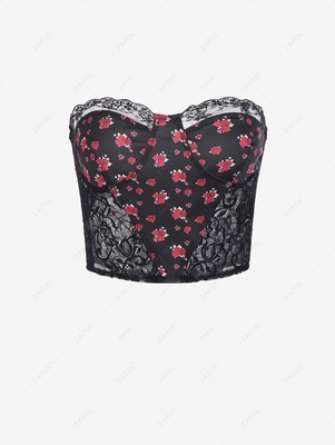 Zaful This corset-style tube top is styled with vivid floral prints, sheer lace panels, and slender lace-up straps at the back to keep looking stylishly sexy and sweet. Style: Fashion, Sexy Shirt Length: Crop Top Collar: Strapless Material: Cotton, Polyester Pattern Type: Floral Decoration: Lace, Lace