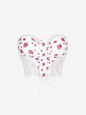 Zaful This corset-style tube top is styled with vivid floral prints, sheer lace panels, and slender lace-up straps at the back to keep looking stylishly sexy and sweet. Style: Fashion, Sexy Shirt Length: Crop Top Collar: Strapless Material: Cotton, Polyester Pattern Type: Floral Decoration: Lace, Lace