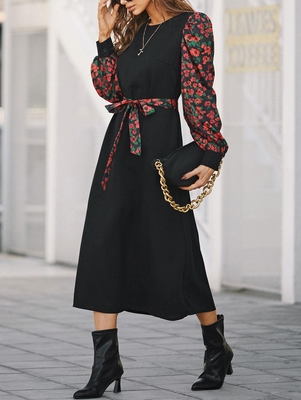 Zaful Style: Casual Occasion: Daily Silhouette: Straight Collar-line: Round Collar Sleeves Length: Long Sleeves Dresses Length: Midi Material: Polyester Material Stretch: No Stretch Pattern Type: Floral Season: Fall, Spring With Belt: Yes Weight: 0.4000kg Package: 1 x Dress 1 x Belt