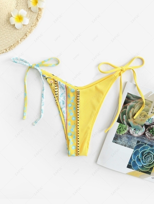 Zaful Style: Cute Swimwear Type: Bikini Bottom Type: Cheeky Bikini Bottom, High Cut Bikini Bottom Material: Polyester, Spandex Pattern Type: Print Decoration: High Cut, Ties Waist Type: Low Waisted Material Stretch: High Stretch Weight: 0.1100kg Package: 1 x Briefs