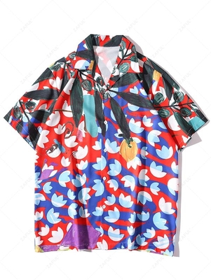 Zaful The combination of surrealism face & flowers print make a statement of Hawaiian. The button-front silhouette is topped with a camp collar, short sleeves. Pair it with matching shorts for a resort-style look. Shirts Type: Casual Shirts Style: Fashion Occasions: Daily Fit Type: Regular Fit Sh