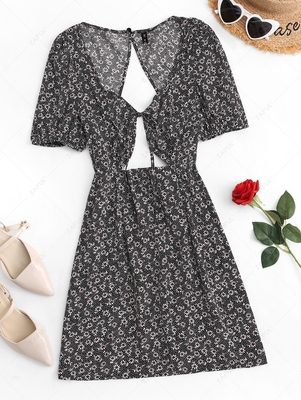 Zaful Don't stress over your next vacay look, with the tiny floral dress you are all set! Featuring a tie-front with an inviting plunging collar, a peekaboo design, & a charming open back. Complete the look with backless loafers. Style: Cottagecore Occasion: Daily, Vacation