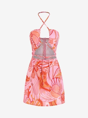 Flower Print Halter Cut Out Mini Dress M Multi A