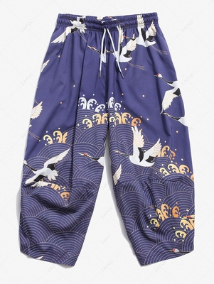 Zaful The baggy cropped pants are both comfortable and stylish, thoughtfully-styled and fit men of all ages and body types. The pants are designed to be roomy and enhance your legs. The pants decorated with oriental flying cranes and sea waves. Pant Style: Cross-pants Style: Casual Pant Length: Cro