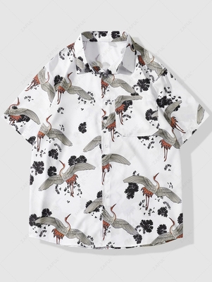 Zaful Get vacation-ready for laid-back days in this shirt featuring the flying cranes & leaves print. The piece featuring a turn-down collar, a button-down silhouette, & a pocket patch will highlight your silhouette & dress you with refinement. Update your casual wardrobe with this shirt sinc