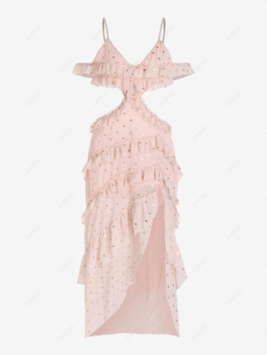 Foil Polka Dot Ruffles Cutout Slit Maxi Dress 2xl Light Pink