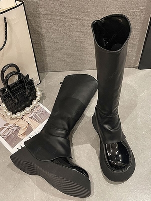 Mid-Calf Toe Shape: Round Toe Heel Type: Platform Closure Type: Zip Pattern Type: Solid Color Outsole