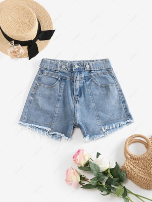 Material: Cotton, Polyester, Spandex Length: Mini Fit Type: Regular Waist Type: Mid Closure Type: Zipper Fly Front Style: Flat Pattern Type: Solid Color Decoration: Frayed, Pockets Wash: Ligth Wash Material Stretch: No Stretch With Belt: No Seasons: Summer Weight:
