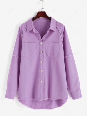 Frayed Raglan Sleeve High Low Denim Shacket M Purple