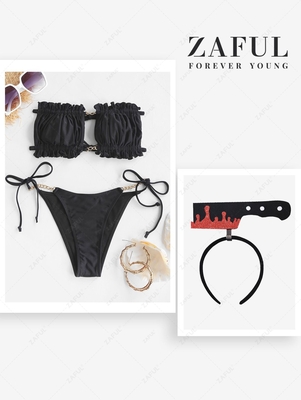 Zaful Clothing Gender: For Women Clothing Style: Cute, Sexy Occasion: Beach, Halloween, Vacation Clothing Type: Bikini Set Swimwear Type: Bandeau Bikini, String Bikini, Tanga Bikini Clothing Collar-line: Strapless Support Type: Wire Free Chest Pad: Removable Pads Clothing