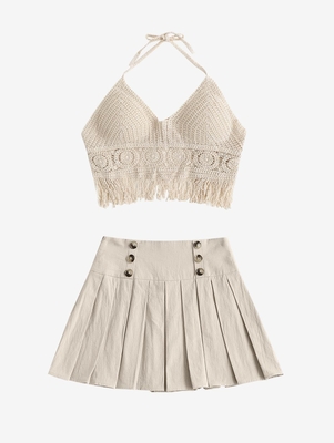 Zaful Occasion: Daily, Vacation Style: Cute Fit Type: Regular Collar-line: Halter Sleeves Length: Sleeveless Silhouette: A Line Bottom Length: Mini Waist Type: High Closure Type: Zipper Fly