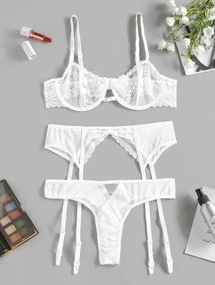 Zaful A delicate sheer lace & mesh lingerie set in a charming & lovely silhouette, which is featuring an underwire bra, matching thong panties with a subtle cutout & feels unique with a sleek garter-belt design. Style: Daily