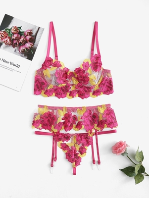 Materials: Cotton, Polyester Bra Style: Unlined Chest Pad: None Pads Cup Shape: Three Quarters (3/4 Cup) Support Type: Underwire Strap Type: Adjusted-straps Closure Style: Back Closure Pattern Type: Floral Decoration: Embroidery, Mesh Material Stretch: Slight Stretch Weight: 0.1200kg