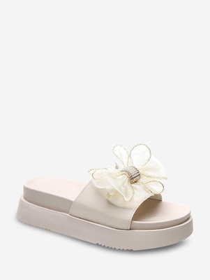 Gauze Bowknot Platform Slippers