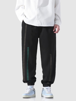 Zaful Pant Style: Jogger Pants Style: Casual Occasions: Daily Pant Length: Long Pants Fit Type: Regular Front Style: Flat Closure Type: Drawstring Waist Type: Mid Pattern Type: Geometric Decoration: Pockets
