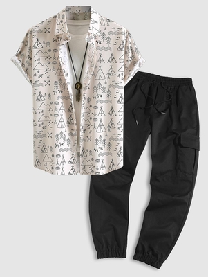 Zaful Type: Shirt& Pants Set Style: Casual Occasions: Daily Top Length: Regular Sleeves Length: Short Bottom Length: Long Pants Waist Type: Mid Closure Type: Drawstring Pattern Type: Geometric