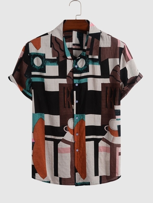 Zaful This shirt features all-over abstract geometric print. It's expertly tailored with a flattering, relaxed silhouette that gives a light-hearted finish. Shirts Type: Casual Shirts Style: Fashion Occasions: Beach, Vacation Fit Type: Regular Fit Shirt Length: Regular Sleeves Length: Short Collar: