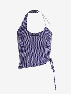 Material: Polyester, Spandex Material Stretch: High Stretch Thickness: Standard Pattern Type: Gingham Decoration: Chains, Rings, Ruched Seasons: Fall, Spring, Summer Weight: 0.0850kg Package: 1 x Tank Top