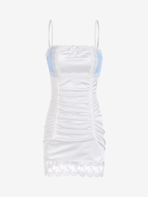 Material: Polyester Material Stretch: Slight Stretch Pattern Type: Gingham Decoration: Bowknot, Lace, Non-adjustable Shoulder Strap, Ruched Season: Fall, Spring, Summer With