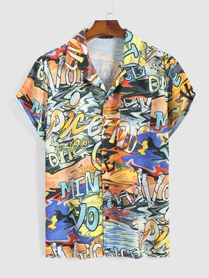 Zaful Shirts Type: Casual Shirts Style: Fashion, Streetwear Occasions: Vacation Fit Type: Regular Fit Shirt Length: Regular Sleeves Length: Short Collar: Shirt Collar Material: Polyester, Spandex Material Stretch: No Stretch Pattern: Graffiti Season: Summer Weight: 0.2100kg Package: 1 x Shirt Note: P