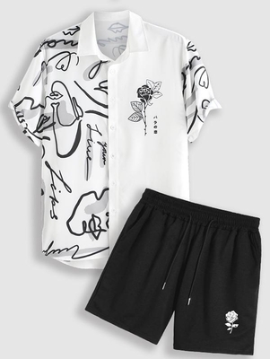 Zaful Type: Shirt& Shorts Set Style: Casual, Fashion Occasions: Daily, Going Out Shirt Length: Regular Sleeves Length: Short Bottom Length: Shorts Waist Type: Mid Closure Type: Drawstring Pattern Type: Abstract, Graffiti, Rose Print