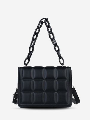 Grid Embossed Solid Color Chain Shoulder Bag