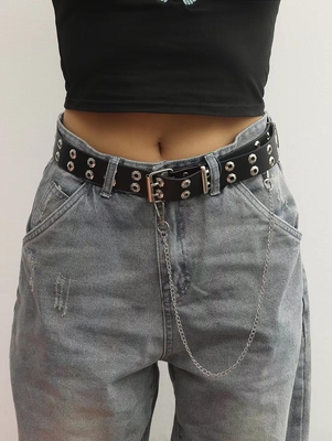 Grommet Eyelet And Chain Decor Square Buckle Belt