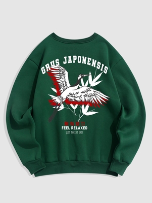 Grus Japonensis Letter Graphic Pattern Pullover Fleece-lined
