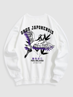 Grus Japonensis Letter Graphic Pattern Pullover Fleece-lined