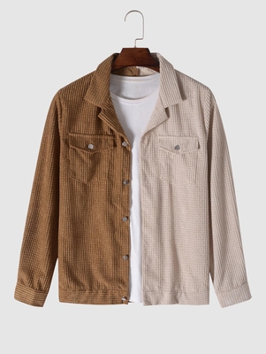 Polyester Material Type: Corduroy Material Stretch: No Stretch Collar: Lapel Shirt Length: Regular Sleeves Length: Long Sleeves Fit Type: Regular Fit Pattern Type: Colorblock, Two Tone Decoration: Pocket Season: Fall, Spring