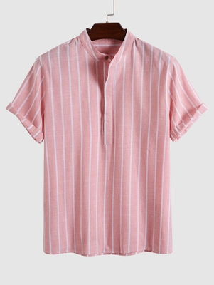 Zaful Shirts Type: Casual Shirts Style: Fashion Occasions: Daily, Office Fit Type: Regular Fit Shirt Length: Regular Sleeves Length: Short Collar: Stand Collar Material: Cotton, Polyester Material Stretch: No Stretch Pattern: Striped Decoration: Button Season: Summer Weight: 0.2000kg Package: 1 x Shi