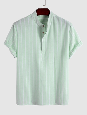 Zaful Shirts Type: Casual Shirts Style: Fashion Occasions: Daily, Office Fit Type: Regular Fit Shirt Length: Regular Sleeves Length: Short Collar: Stand Collar Material: Cotton, Polyester Material Stretch: No Stretch Pattern: Striped Decoration: Button Season: Summer Weight: 0.2000kg Package: 1 x Shi