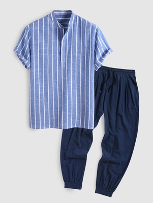Zaful Type: Shirt& Pants Set Style: Casual Occasions: Daily Shirt Length: Regular Sleeves Length: Short Bottom Length: Nine minutes of Pants Waist Type: Mid Closure Type: Drawstring, Elastic Waist Pattern Type: Striped Decoration: Pocket