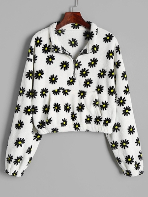 Material: Cotton, Polyester Material Stretch: No Stretch Fit Type: Loose Pattern Style: Daisy Decoration: Front Pocket Seasons: Winter Weight: 0.4100kg Package: 1 x Sweatshirt