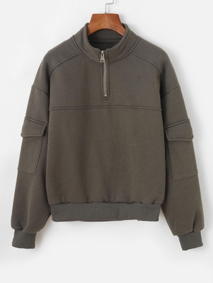 Zaful An edgy update on a classic sweatshirt, this piece features a sporty half-zip front & two cargo pockets ar the sleeves for a perfect functional finish. Just pair it with your favorite denim to complete the look. Style: Fashion Clothing Style: Sweatshirt Collar-line: Mock Collar Sleeve Type:
